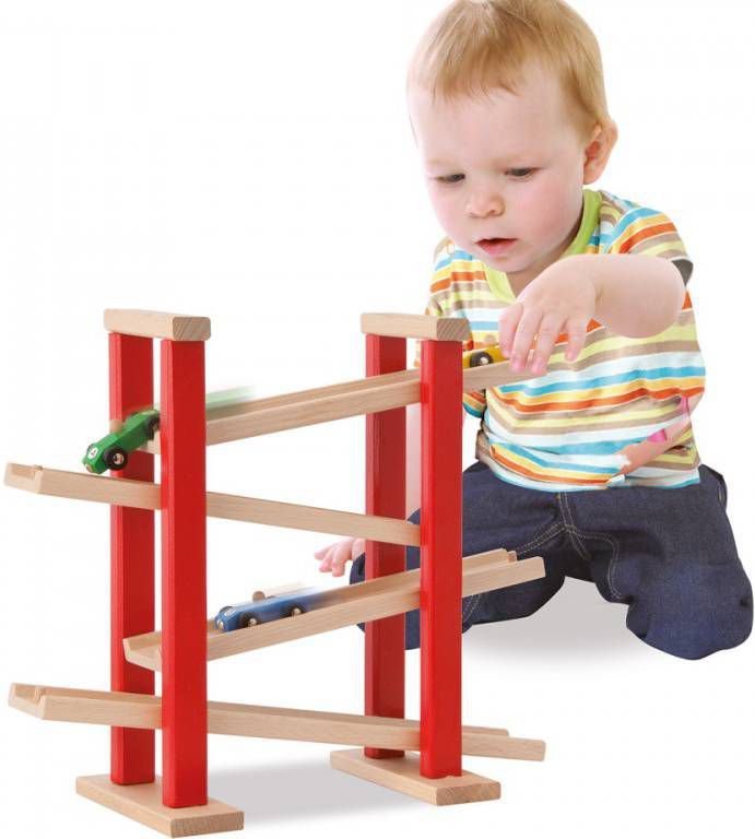 Deze autobaan met vier verdiepingen ziet er geweldig uit en is een leuke manier om kinderen te vermaken. De autootjes kunnen vanaf de bovenste verdieping naar de onderste verdieping rijden omdat de baan zo ontworpen is dat de autootjes naar beneden zigzaggen. Eigenschappen:Natuurlijk gekleurd hout5-delige set4 verdiepingen en 4 auto'sBeukenhout.