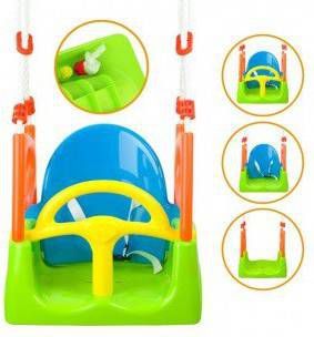 Het is zeker heerlijk schommelen met deze 3 in 1 babyschommel! Deze multifunctionele babyschommel heeft 3 verschillende standen. De eerste stand heeft een rugleuning en beugel is te gebruiken voor de leeftijd van 1,5 tot 3 jaar. De tweede stand met rugleuning van de babyschommel is te gebruiken van 3 tot 5 jaar. Vervolgens kunnen 5-12 jarige gebruik maken van de laatste stand van de babyschommel zonder bijgevoegde leuning of beugel. De babyschommel is gemaakt van weerbestendig kunststof. Deze babyschommel is geschikt voor kinderen van 1,5 jaar tot 5 jaar. Heerlijke babyschommel om lekker in te schommelen.