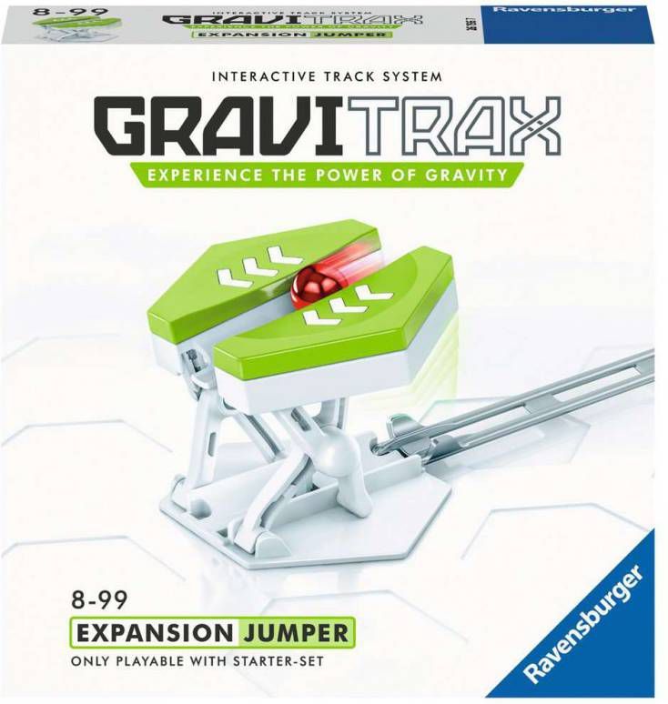 Laat je knikkers over een nog coolere baan rollen met de Gravitrax Jumper! Zorg ervoor door slim te bouwen dat de Jumper een mooie plek in de baan heeft, zodat de knikkers een nóg epischere en uitdagendere route krijgen. Door de Jumper kan.