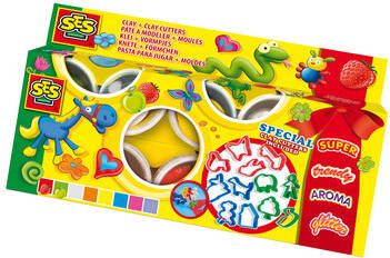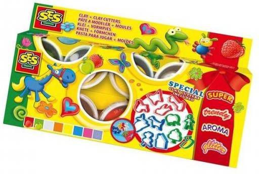 Met de kleiproducten van SES zit je altijd goed. Deze cadeauverpakking superklei met vormpjes is een complete set met allerlei soorten klei uit het assortiment van SES. De set bestaat uit acht potjes klei in verschillende heldere kleuren: rood, groen, wit, oranje, geel, blauw, roze en paars. Bovendien geurt de rode klei heerlijk naar aardbei en de groene naar appel. De klei is mooi, makkelijk en lang bruikbaar door de hersluitbare verpakking. Daarnaast is de klei super zacht en droogt niet uit tijdens het spelen. Ook is de klei veilig te gebruiken. Hij is extreem zout, zodat je kindje het niet op zal eten.