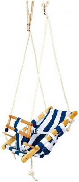 Product details: Leeftijd: vanaf 18 maanden Schommel gemaakt van glad gepolijst massief hout Het stevige textiel in wit en blauw biedt een comfortabele ondergrond om op te liggen Schommelen bevordert de ontwikkeling van het evenwichtssysteem Het veiligheidstuigje en de stof tussen de benen houden uw kind licht en veilig Afmetingen en gewicht: Afmetingen touwlengte: ca. 120 cm Afmetingen schommel (lengte x breedte x hoogte): 36 x 24 x 54 cm Draagvermogen: Maximaal 25 kg Gewicht: 1,7 kg Materiaal en verzorging: Materiaal: Hout, stof Waarschuwing & veiligheidsvoorschriften: Opgelet: Alleen voor huishoudelijk gebruik.