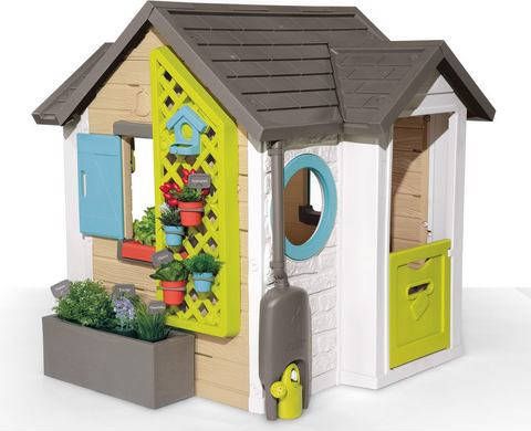 Tuinhuisje Met het tuinhuis kan je kind tuinieren leren terwijl hij of zij geniet van het tuinhuisje. Het tuinhuisje van Smoby is voorzien van 2 poorten en 2 ramen met luiken. Daarnaast heeft het speelhuisje ook een grote planten.